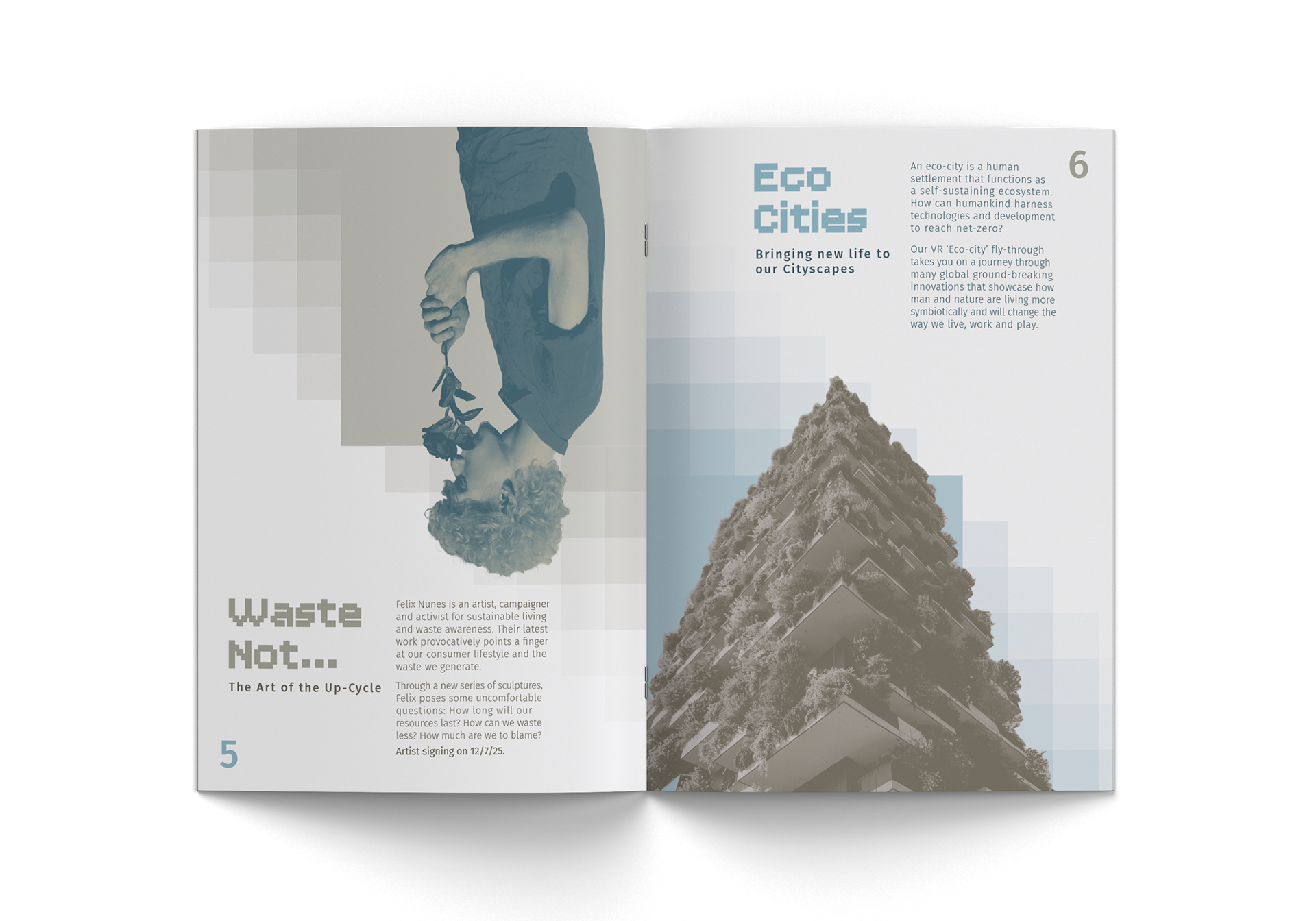I picked a pixelated typeface for my headlines to further explore the grid-like visual language.